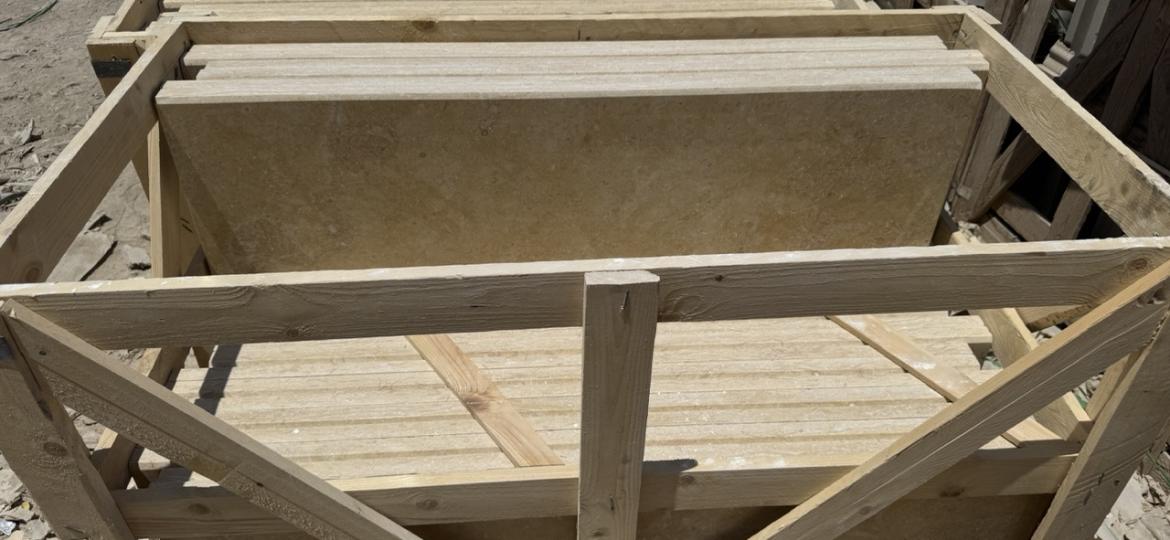 Sunny Menia Marble stairs resin treated + polished with 1 long beveled & polished edge in size 33x120x3 cm